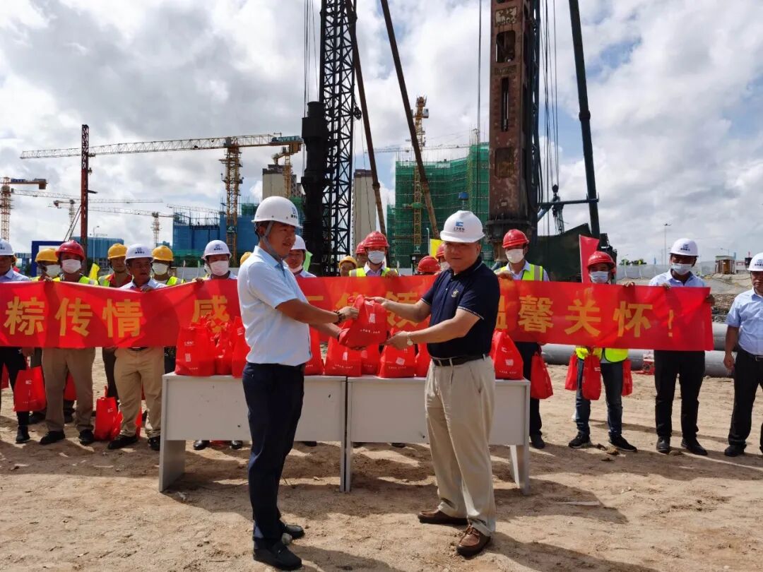浓情迎端午,慰问暖人心。端午节来临之际,在集团公司领导的大力支持下,集团下属子公司珠海EVO视讯置地投资有限公司总经理罗克锋、总工张国强于6月11日带领各项目负责人、各部门成员慰问项目一线施工人员,为他们送上节日祝福及粽子、清凉饮料等慰问品。