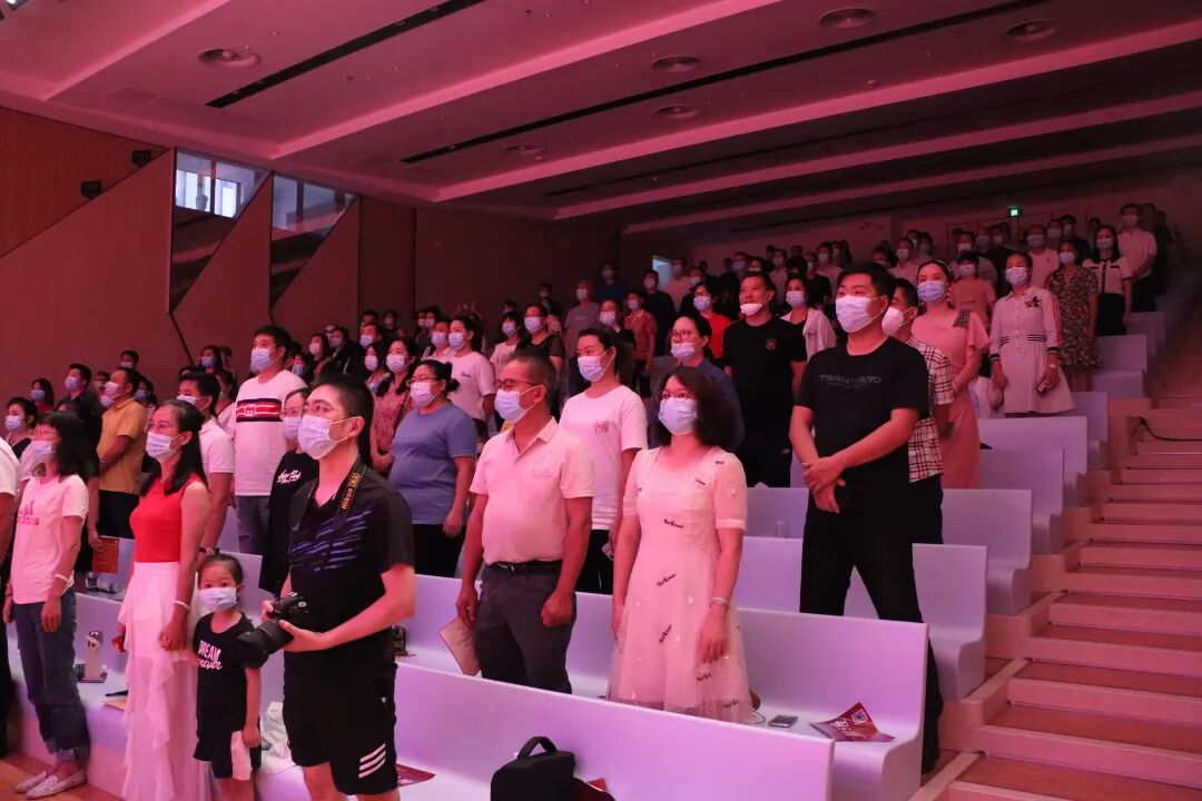 鲜艳的五星红旗迎风飘扬,“起来!不愿做奴隶的人们!把我们的血肉,筑成我们新的长城......”庄严的国歌响起,全场观众按捺不住耐心激动的心情,一起共唱国歌。